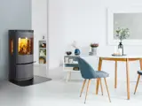 Slapp av og nyt det vakre flammebildet fra ILD 10 ECO. Det buede frontglasset sammen med smale sideglass gir deg innsyn til flammene fra flere vinkler i rommet. Ovnen har en praktisk hylle i sokkelen som kan skjules bak en dør (tilleggsutstyr), perfekt for oppbevaring av ved eller tilbehør. Askeskuffen gjør det enkelt å tømme asken uten søl. Med mulighet for utelufttilkobling sikrer denne ovnen god forbrenning og frisk luft utenfra.