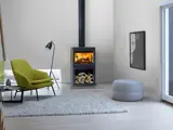 Jøtul F 520 er en moderne og funksjonell vedovn med store glassflater på tre sider som gir deg panoramainnsyn til flammene – et levende midtpunkt i rommet.