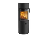 Scan 67 1300 er en moderne og plassbesparende peisovn i D-form, designet med fokus på enkelhet, funksjonalitet og holdbarhet – kjernen i dansk designtradisjon. Det buede panoramaglasset gir flott innsyn til flammene, mens den flate baksiden gjør at ovnen kan stå nær veggen – perfekt for små rom eller stilrene hjem.