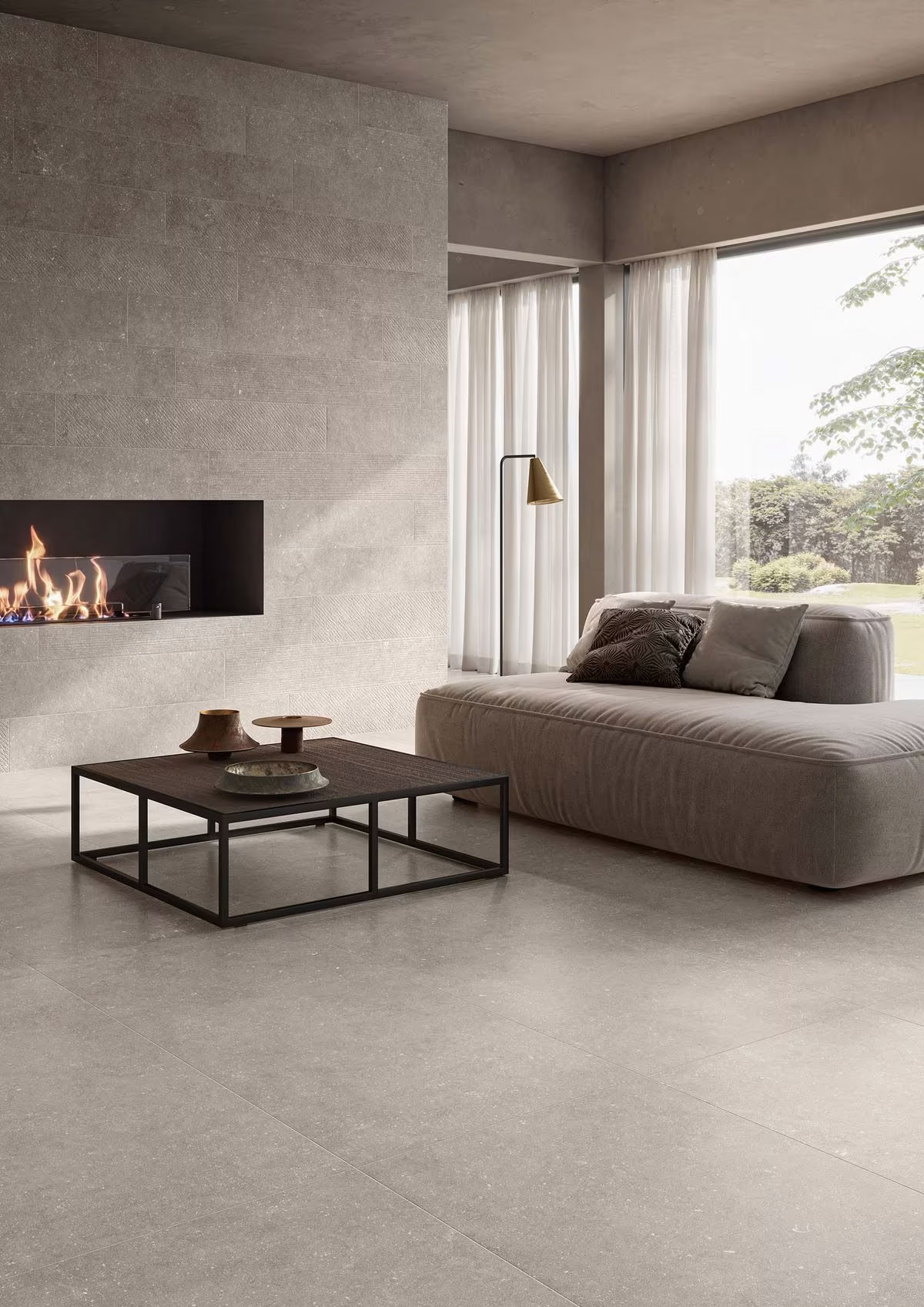 Peisen er ofte et naturlig blikkfang – bruk flisene til å fremheve dette. Enten med en dristig aksent eller et rolig, nøytralt uttrykk – målet er å skape et rom som føles varmt, personlig og innbydende.