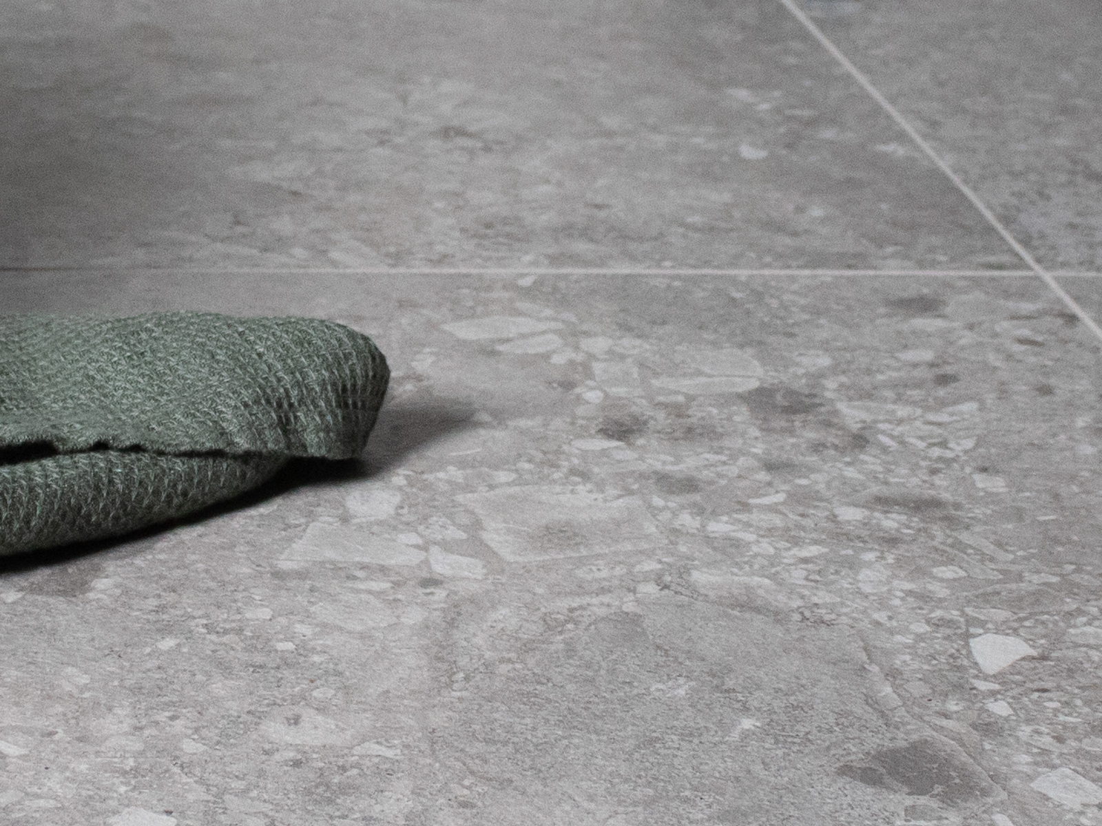 Etter dusjing, skyll flisene med rent vann for å fjerne såperester og fett. Dette forhindrer oppbygging av kalk og smuss, spesielt i dusjsonen og rundt toalettet.