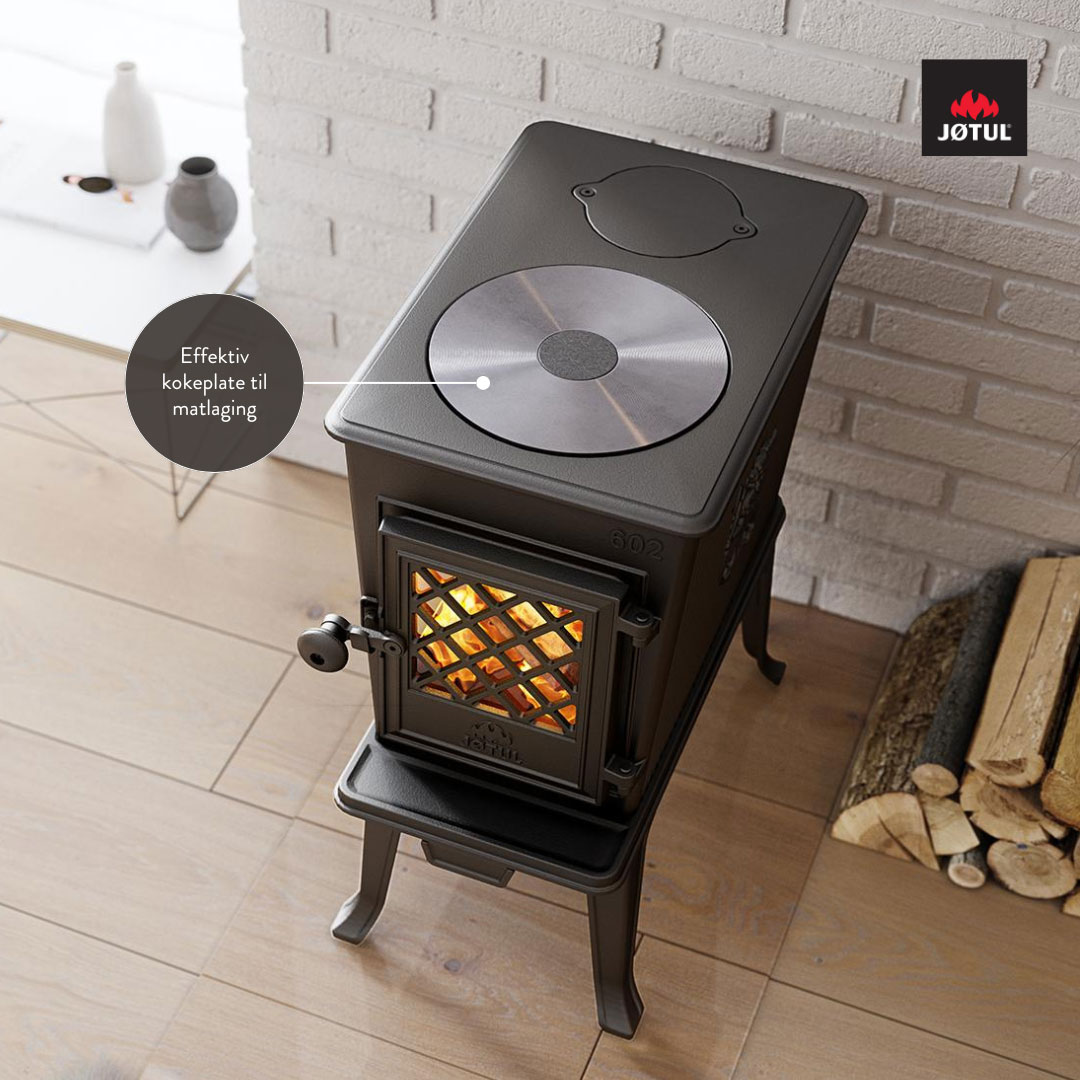 - Jøtul F 602 – klassiker med kokeplate som varme og matlaging